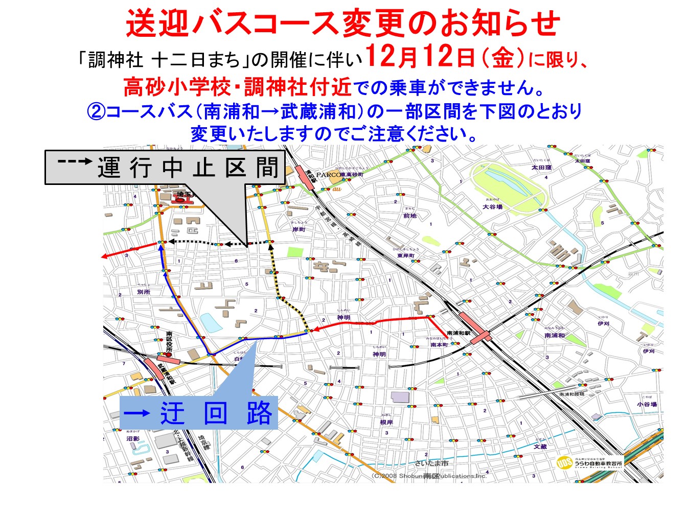 12月12日(金)は十二日まち開催日につき、高砂小学校・調神社付近での乗降車ができません。