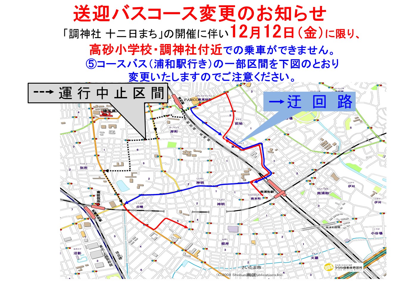 ➁コースバス(南浦和駅→武蔵浦和駅)及び⑤コースバス(浦和駅行き)の一部区間を下図のとおり変更いたしますのでご確認ください。